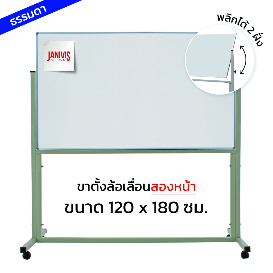 กระดานไวท์บอร์ด ชนิดขาตั้งล้อเลื่อนสองหน้า 120*180