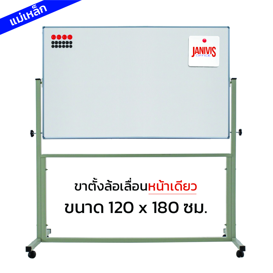 กระดานไวท์บอร์ดแม่เหล็ก ขาตั้งล้อเลื่อนหน้าเดียว 120*180