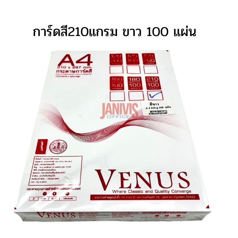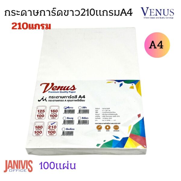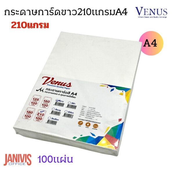 กระดาษการ์ดสีขาว ขนาด A4 210 แกรม จำนวน 100 แผ่น