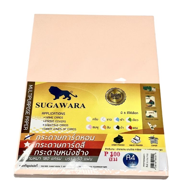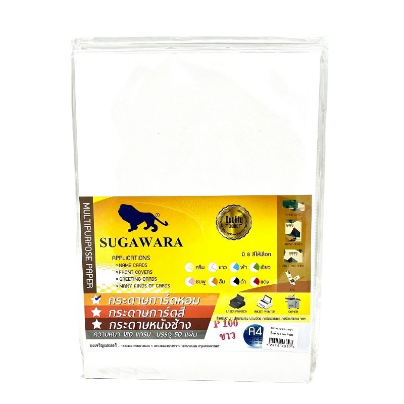 – ผลิตจากเยื่อกระดาษอย่างดี – กระดาษเนื้อหนา ละเอียด แข็งแรง ไม่ติดขัดเครื่องพิมพ์ – สีกระดาษเป็นเนื้อเดียวกับเนื้อกระดาษ สวย สม่ำเสมอตลอดแผ่น – เนื้อกระดาษใช้งานได้ 2 หน้า – มีกลิ่นหอม – สำหรับทำปกรายงาน นามบัตร การ์ดอวยพร การ์ดแต่งงาน – สำหรับงานพิมพ์อื่นๆ – ระวังความร้อนและความชื้น