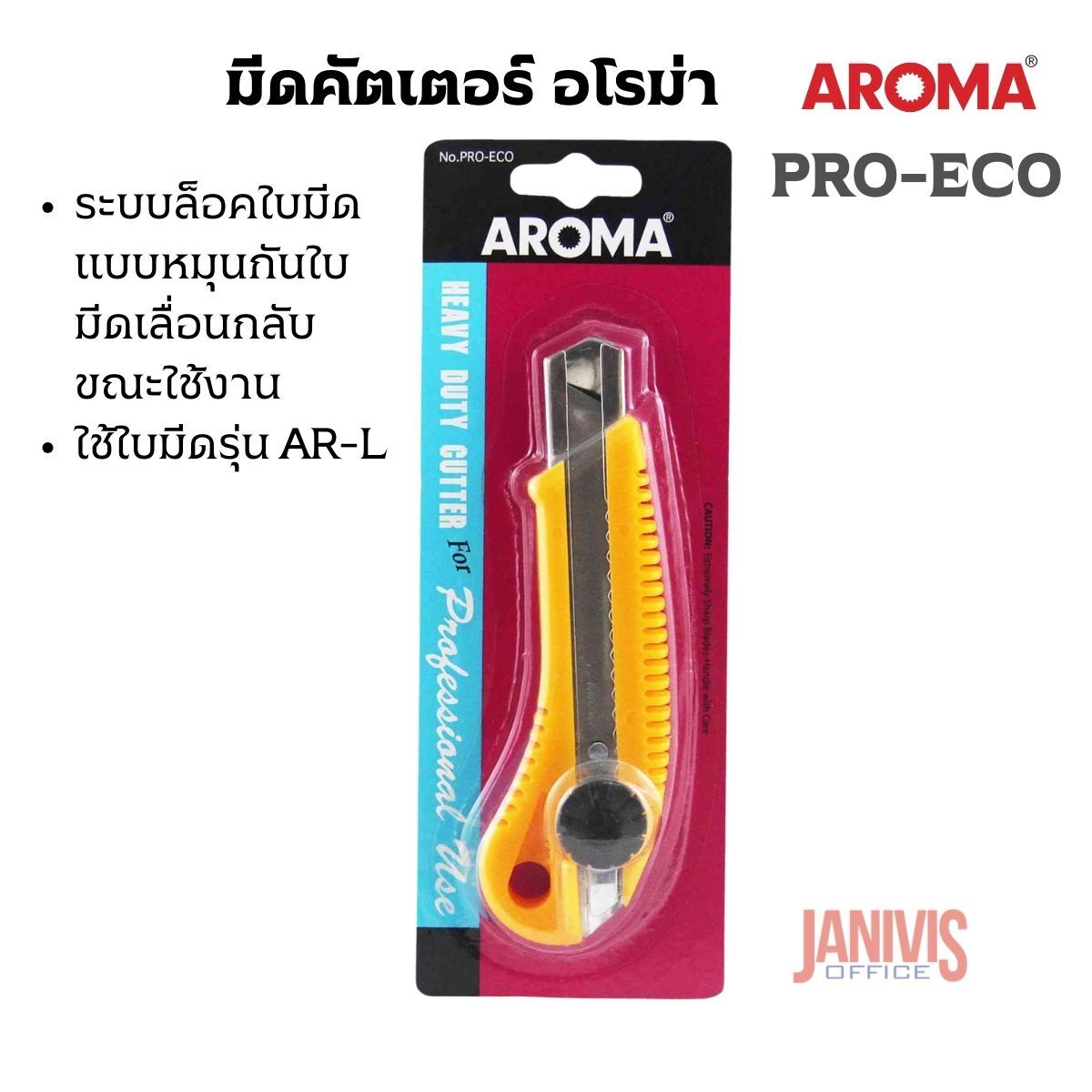 - มีดคัตเตอร์สแตนเลสหุ้มพลาสติก AROMA PRO-ECO ใช้ใบมีดขนาดใหญ่