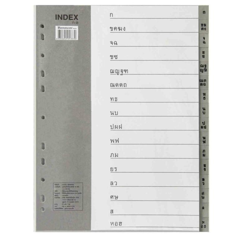 - ชุดดัชนี (Index) พลาสติก 16 หยัก BENNON IX816 แบบสีเทา ขนาด A4