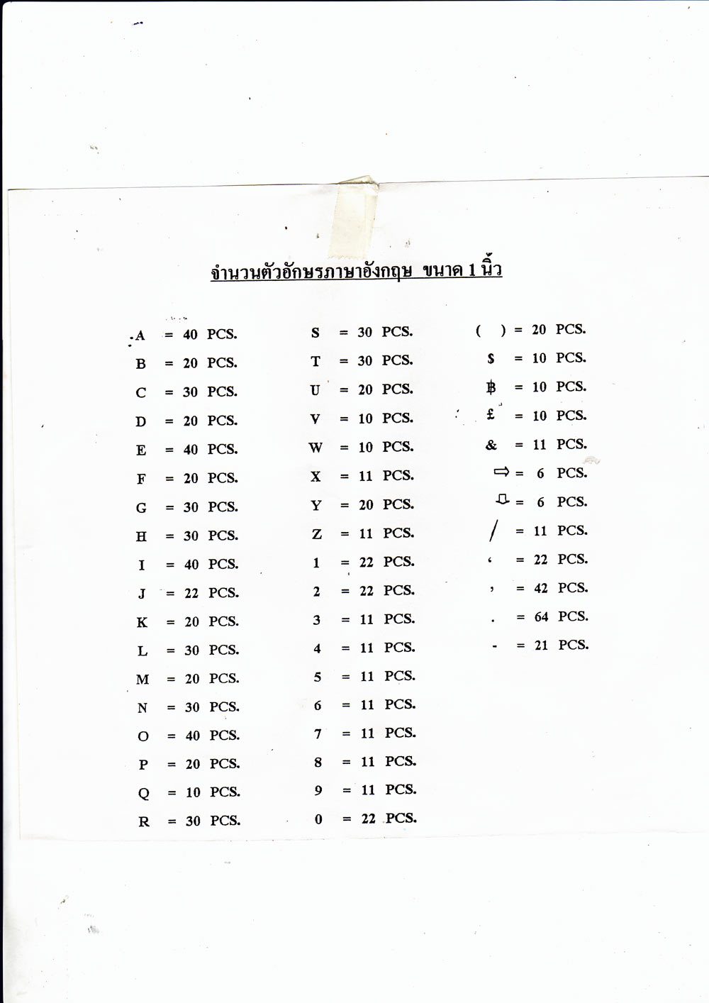 ตัวอักษรสีขาว สูง 1 นิ้ว