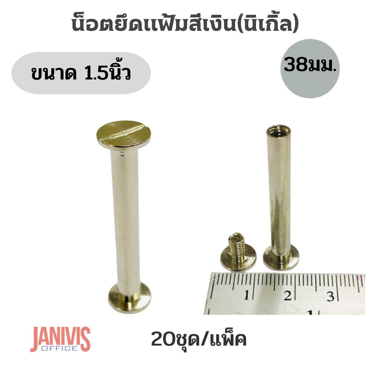 น็อตยึดแฟ้มสีเงิน(นิเกิ้ล) ขนาด 1.5นิ้ว(38มม.)20ชุด/แพ็ค