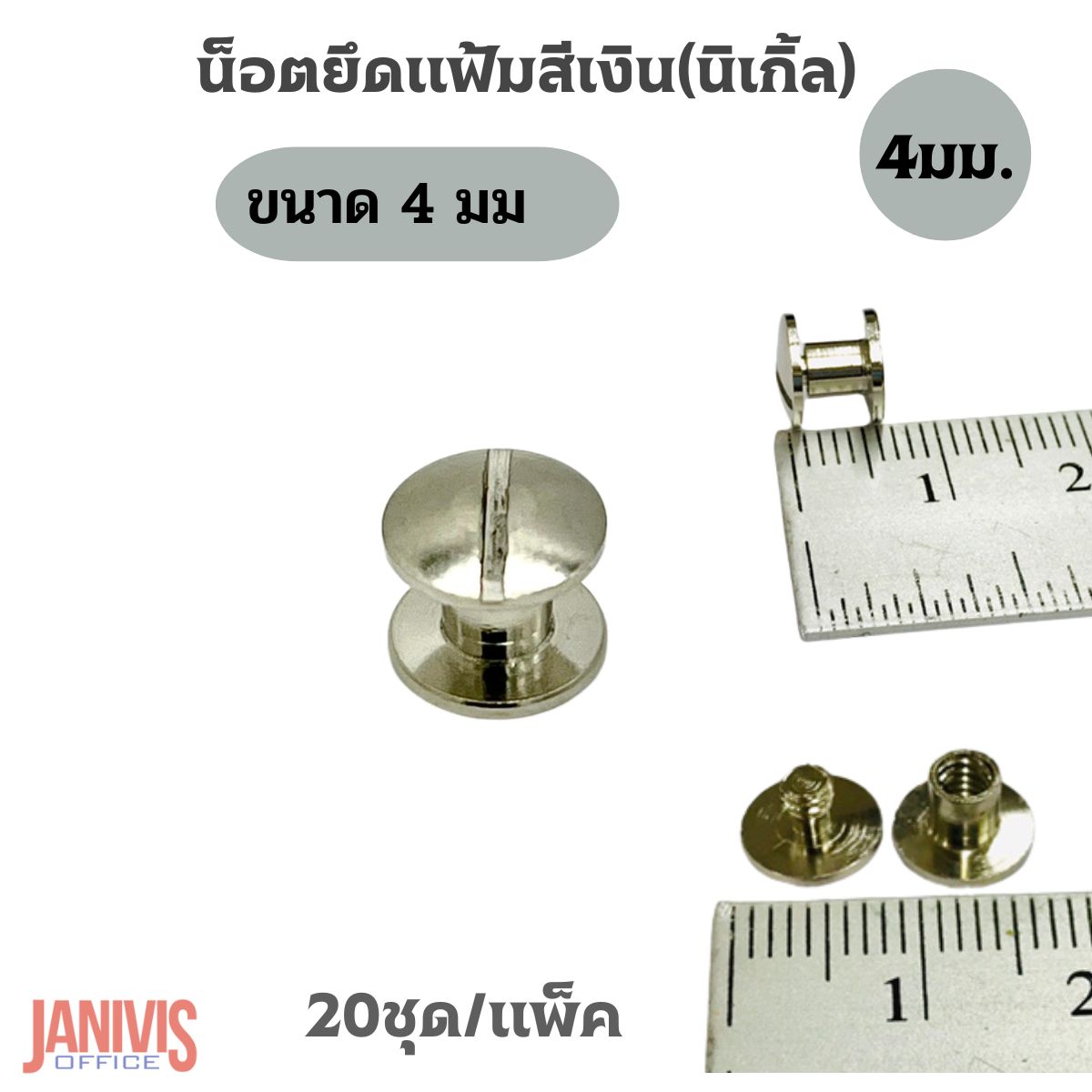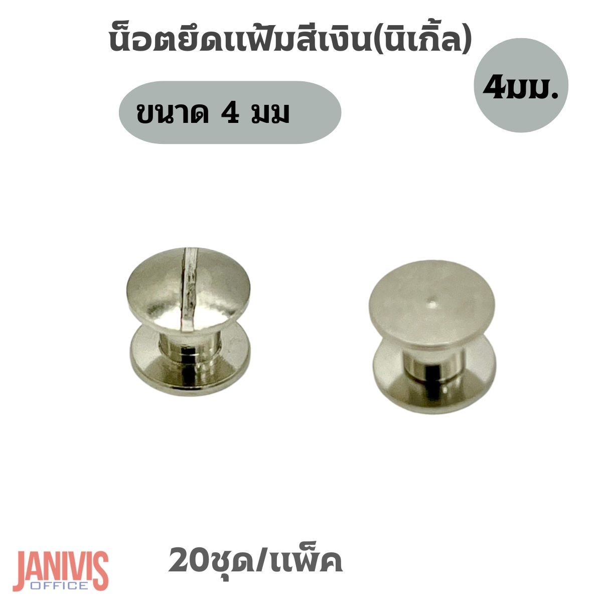 น็อตยึดแฟ้มสีเงินนิเกิ้ล ขนาด 4 มม.(M4)20ชุด/แพ็ค