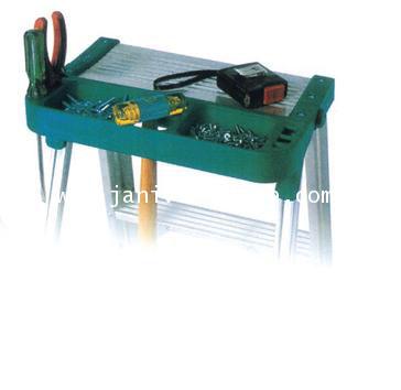 - มีถาดวางอุปกรณ์เครื่องมือที่บันไดขั้นบนสุด ซึ่งใช้ยืนได้เช่นเดียวกับบันไดขั้นอื่น ๆ