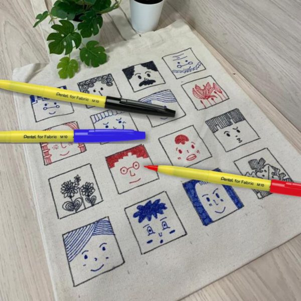 ปากกาเขียนผ้า Pentel fabric marker M-10 สีน้ำเงิน สีแดง และสีดำ