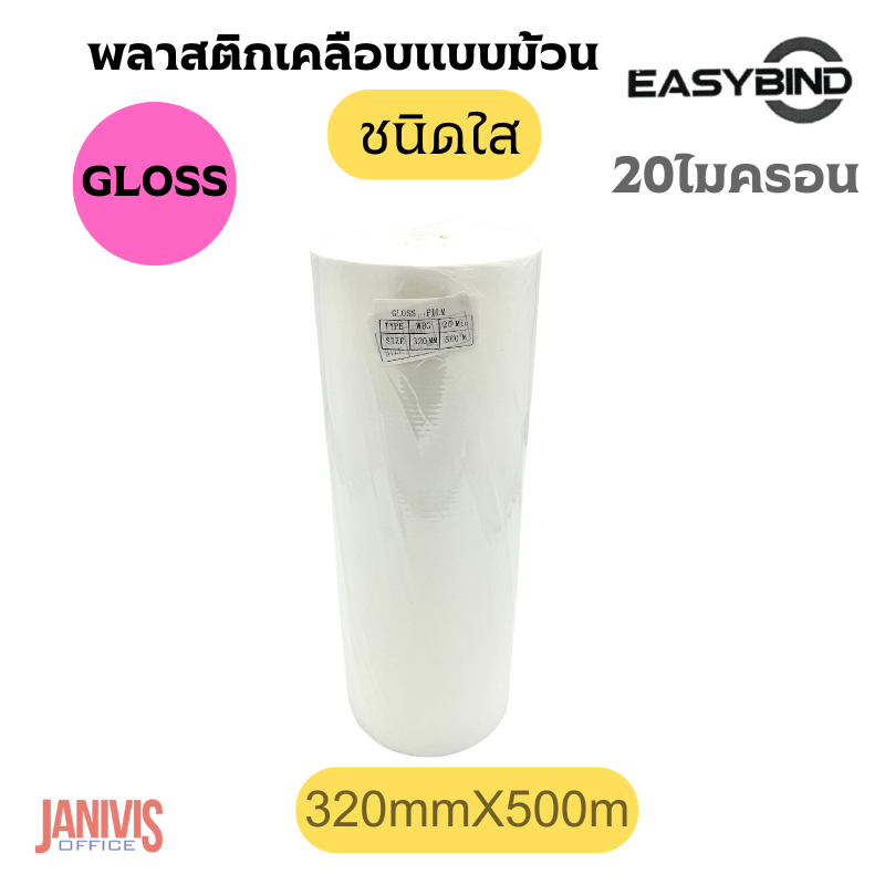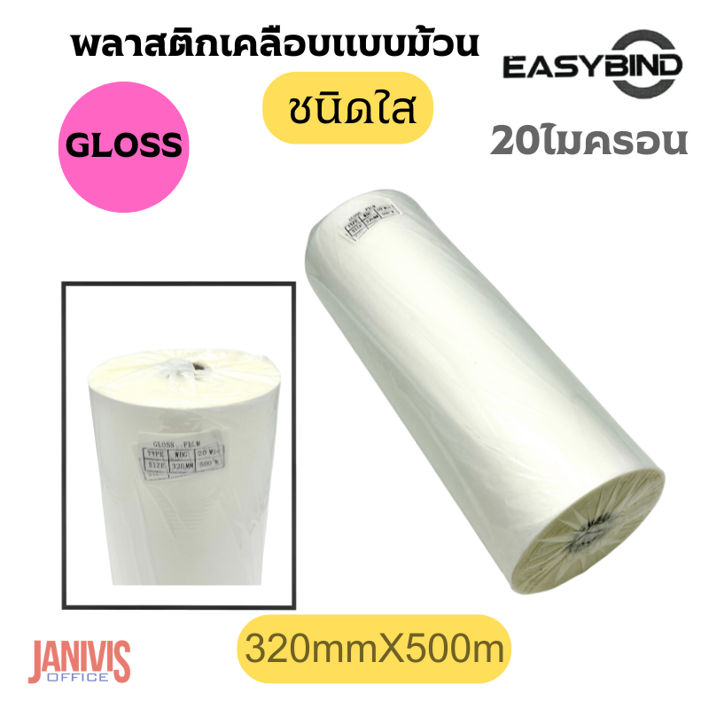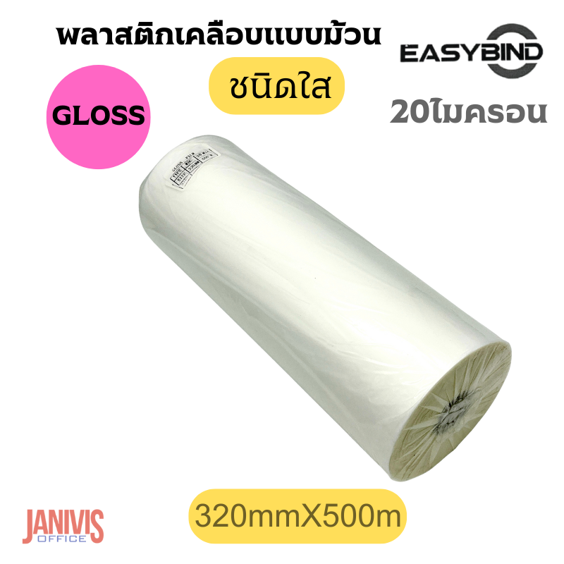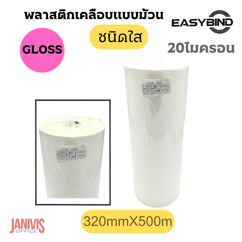ฟิล์มเคลือบBOPPชนิดม้วนEASYBINDชนิดใส(GLOSS) 20 ไมครอน 320mmX500M