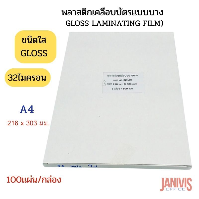 ขนาด216 x 303 มม.หนา 32 ไมครอน จำนวน 1 กล่องมี 100 แผ่น