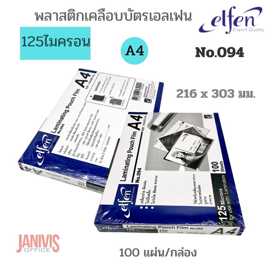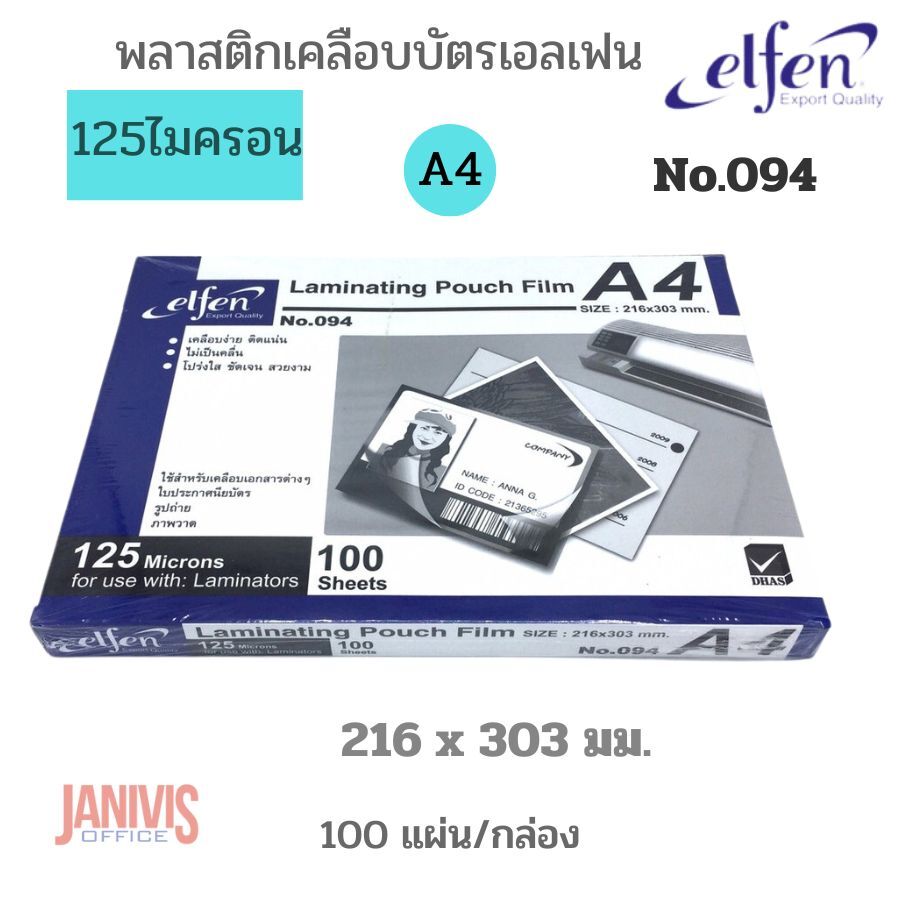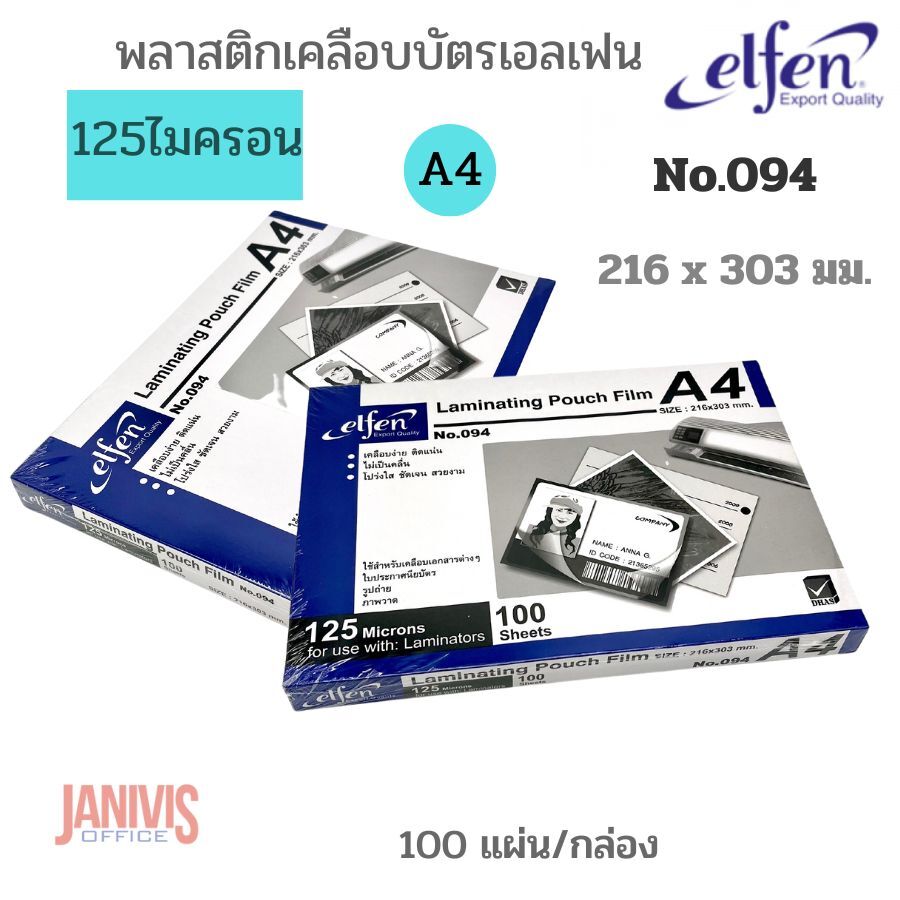 พลาสติกเคลือบบัตร เอลเฟ่น No.094 ขนาด A4 216 x 303 มม.(แพ็ค 100 แผ่น)