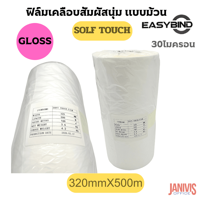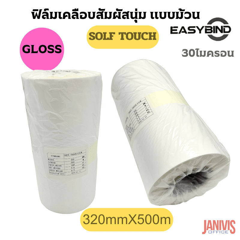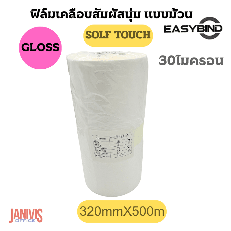 ฟิล์มเคลือบSOFT TOUCHชนิดม้วนEASYBIND 30 ไมครอน 320mmX500M แกน3นิ้ว