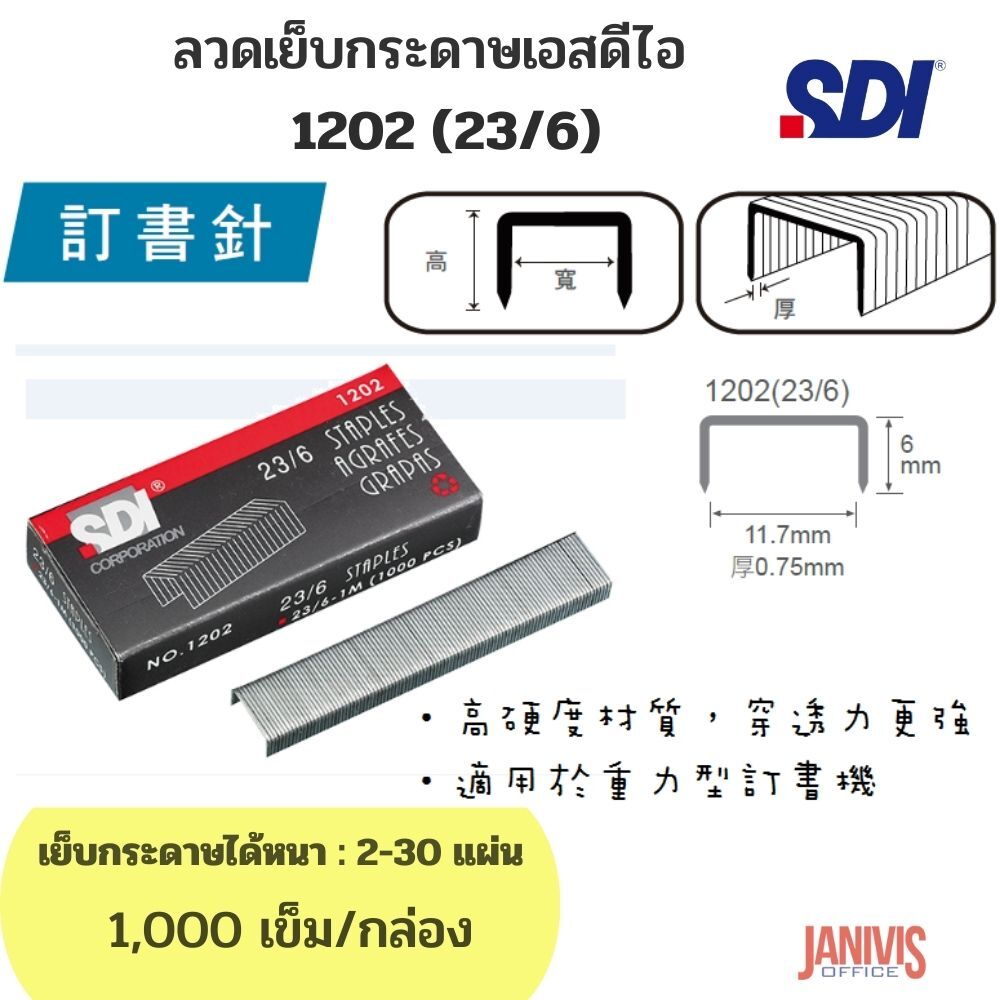 ลวดเย็บกระดาษ SDI 1202 (23/6)1,000เข็ม/กล่อง