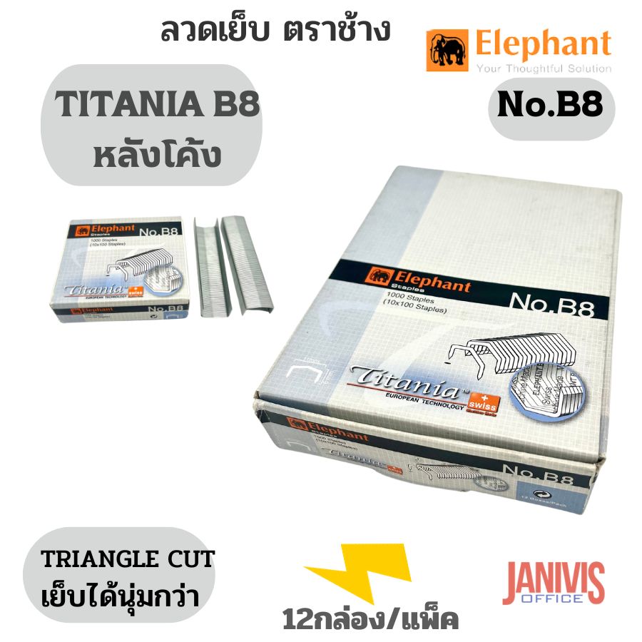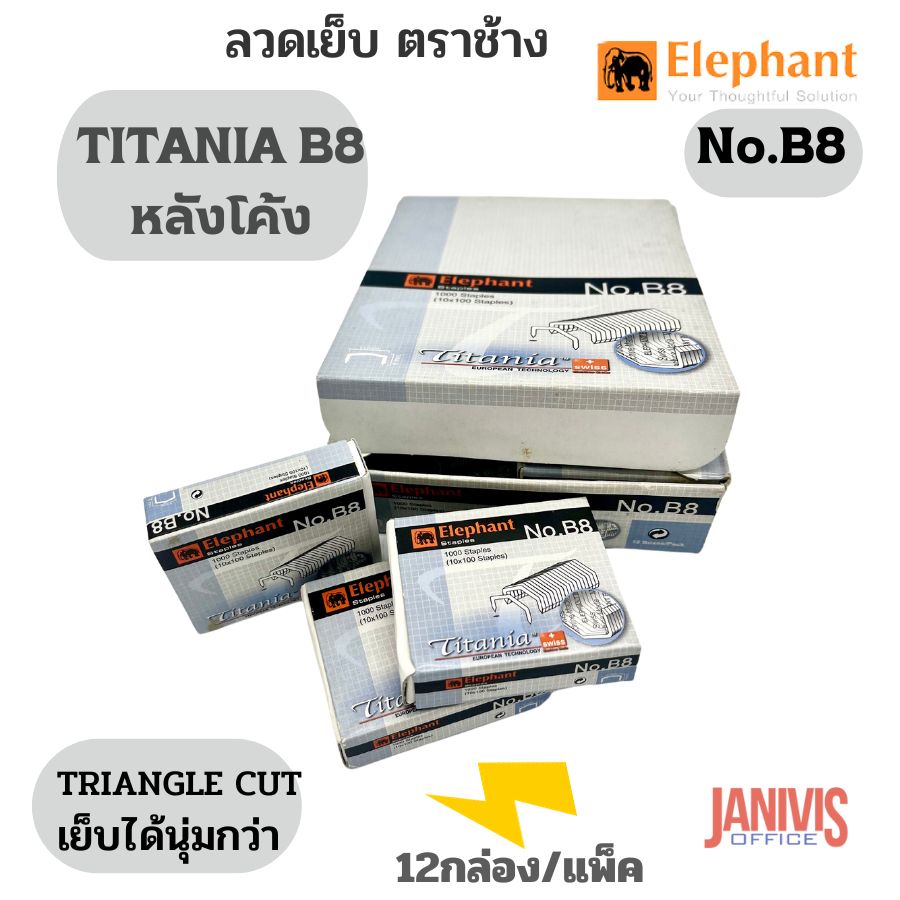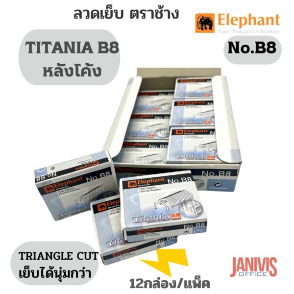 Elephant ลวดเย็บ ตราช้าง Titania No.B8 (หลังโค้ง)12 กล่อง/แพ็ค
