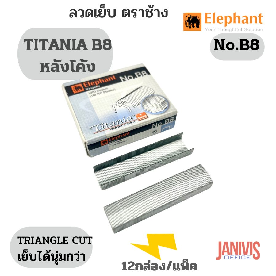 ลวดเย็บกระดาษ ตราช้าง TITANIA B8 (หลังโค้ง) ผลิตจากเส้นลวดคุณภาพสูง