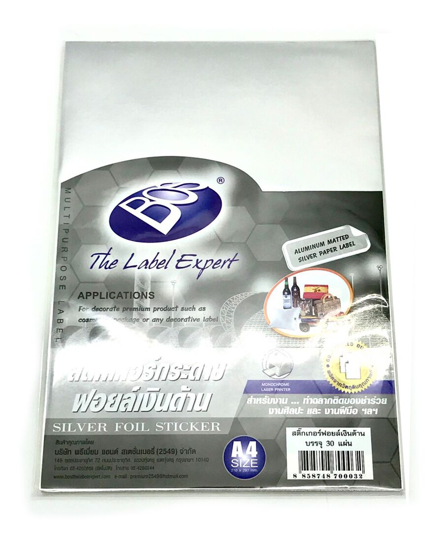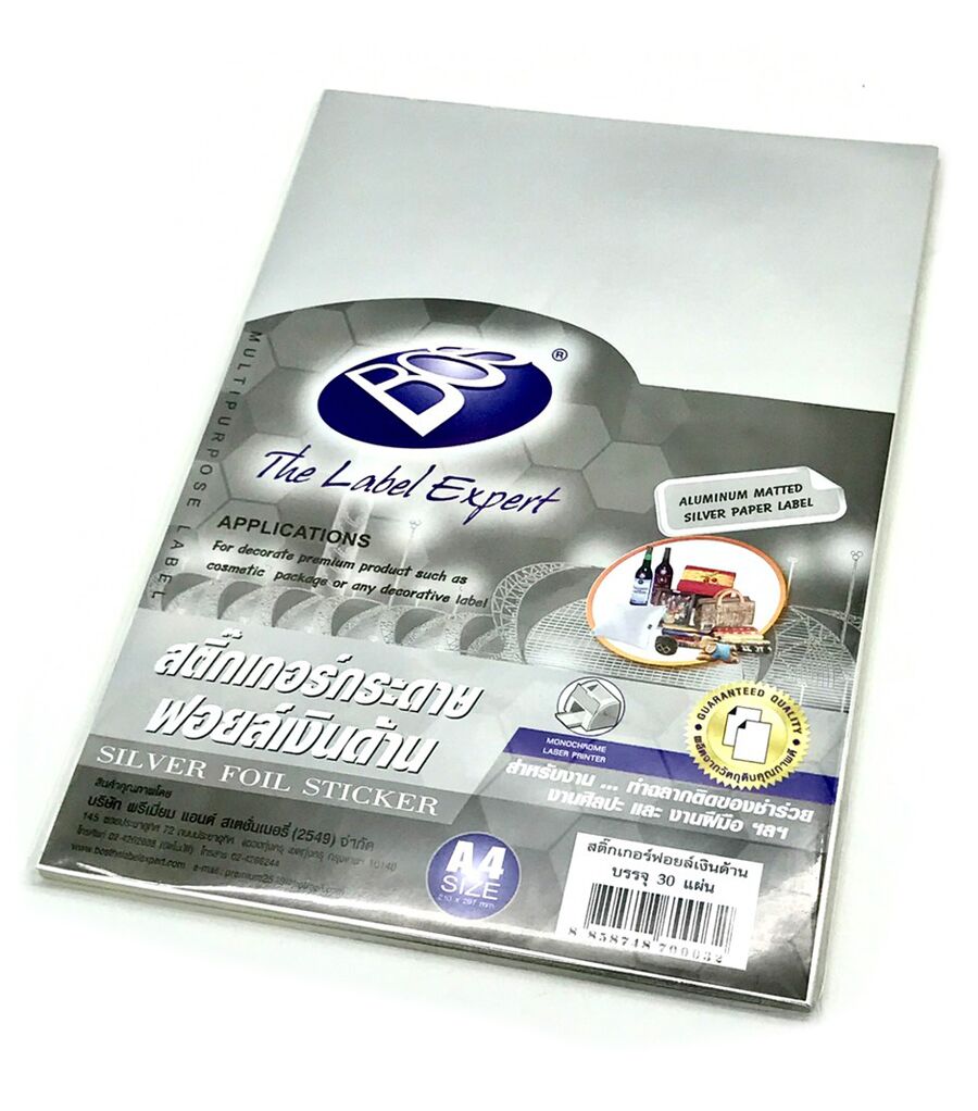 ผลิตภัณฑ์สติ๊กเกอร์กระดาษด้านหน้าเคลือบฟอยล์สีเงิน (ด้านหน้าหนา 80 แกรม)