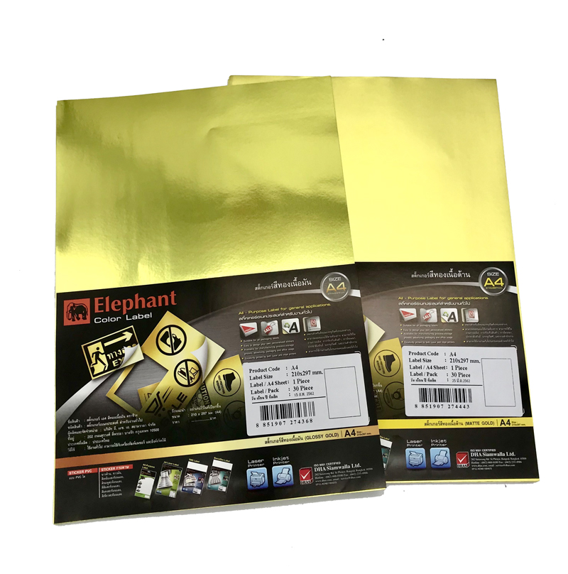- สติกเกอร์กระดาษฟอลย์ทองด้าน เนียนเรียบเสมอทั่วแผ่น