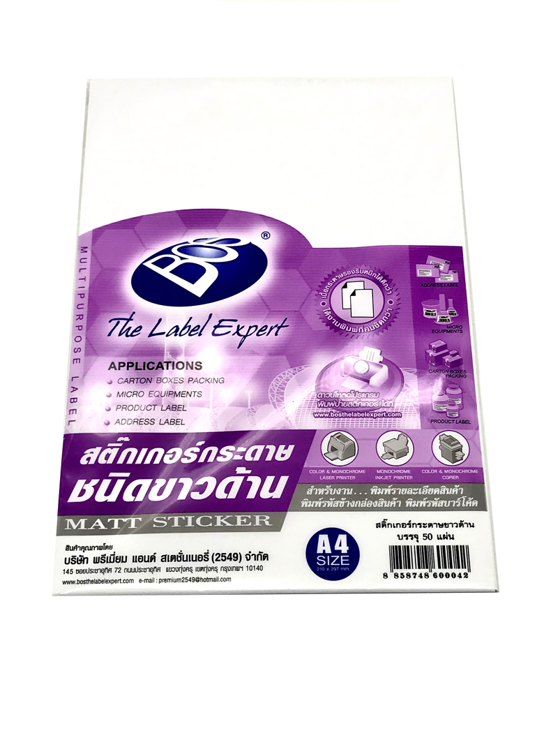 - สติกเกอร์กระดาษ ขาวด้าน เรียบเสมอทั่วแผ่น