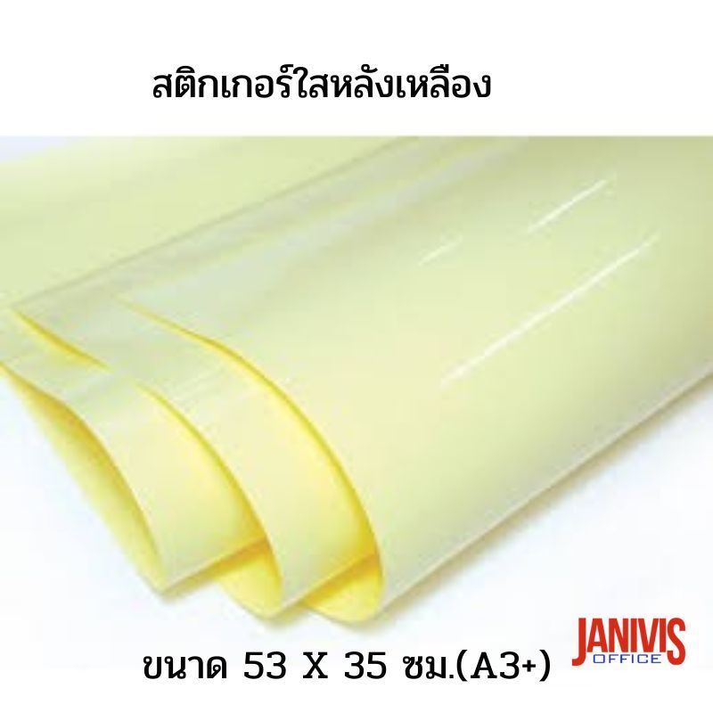 สติกเกอร์พลาสติกพีวีซี ผิวมันเงาลื่น กันน้ำได้ เนื้อกาวเหนียวแน่นติดทนนานแน่น ไม่หลุดลอก เหมาะสำหรับติดเคลือบบนปกหนังสือเพื่อกันน้ำกับเปื้อน หรือทำงานศิลปต่างๆ สีใส ขนาดกว้างxยาว 35×53 ซม. จำนวน 100 แผ่น/ห่อ
