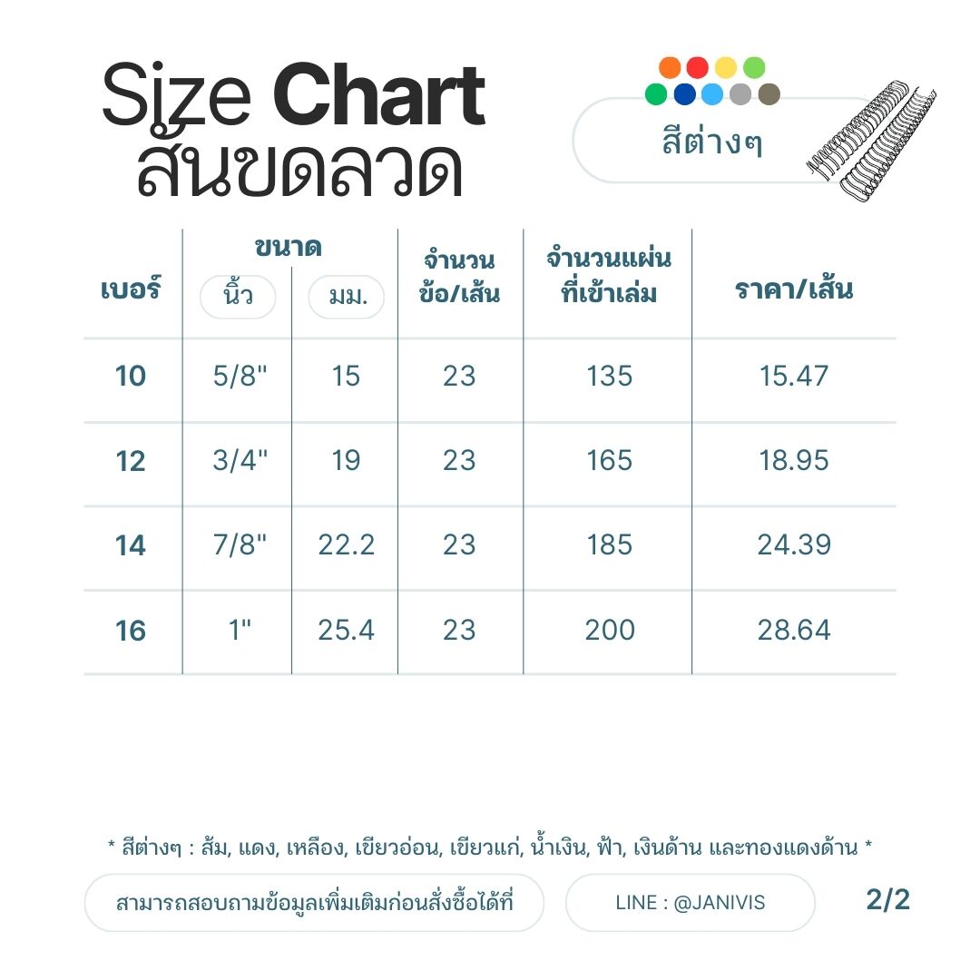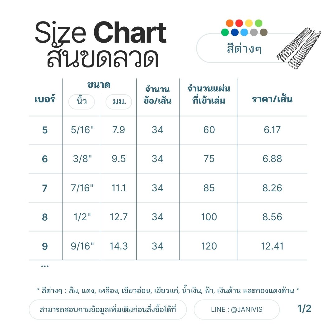 * ขนาดสันห่วงเส้นผ่านศูนย์กลาง 3/8 นิ้ว (9.5 มม.)