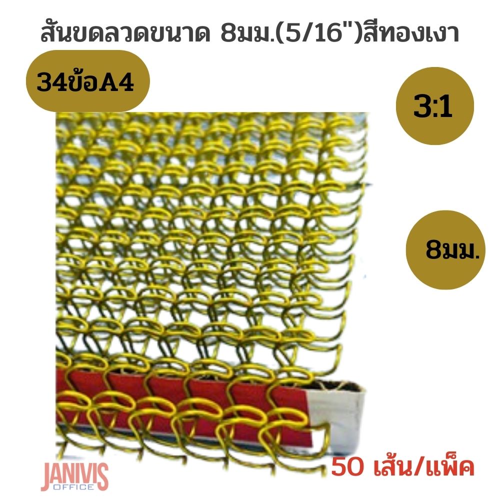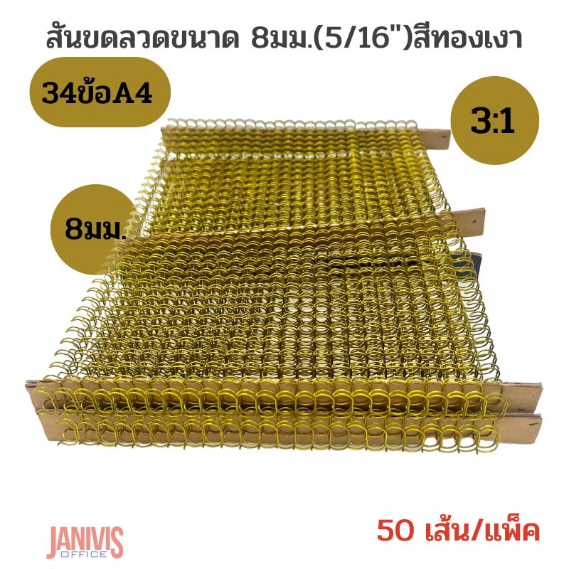 * สันห่วงสีทอง ขนาดสันห่วงเส้นผ่านศูนย์กลาง 5/16 นิ้ว (8 มม.)