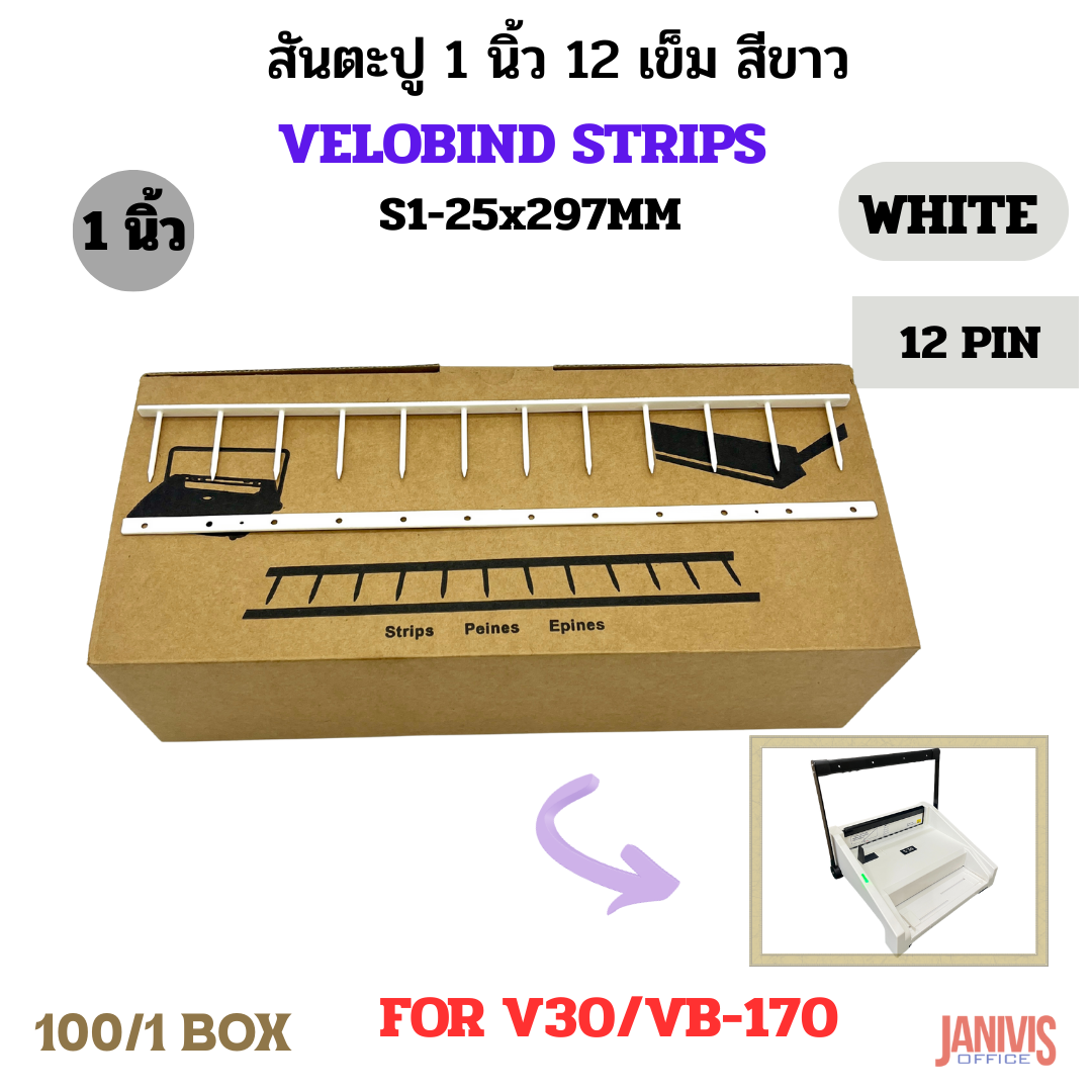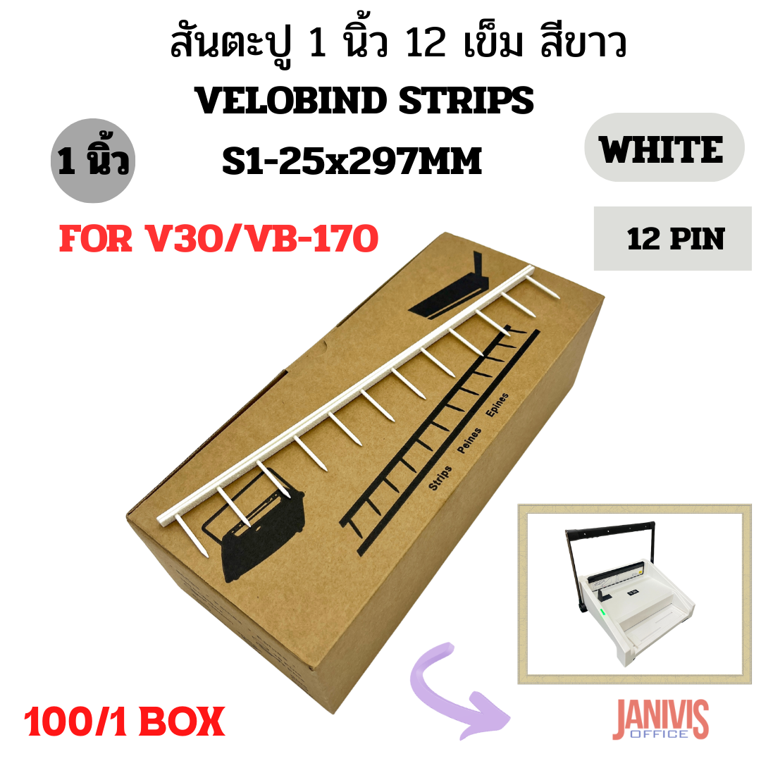 VeloBind Strip S1 25X297mm White (100)