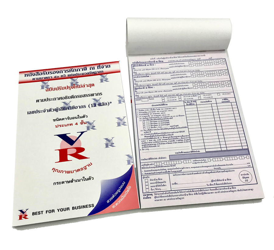 หนังสือรับรองหักภาษี ณ ที่จ่ายชนิดคาร์บอนในตัว 4 ชั้น VR 2 เล่ม/แพ็ค