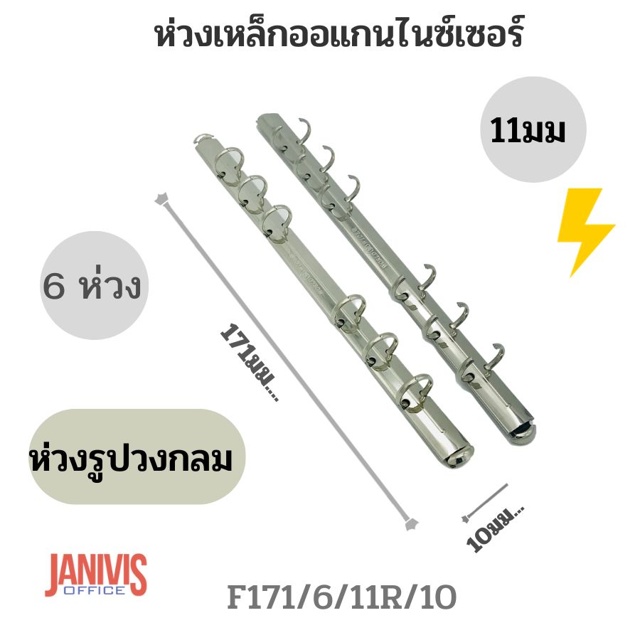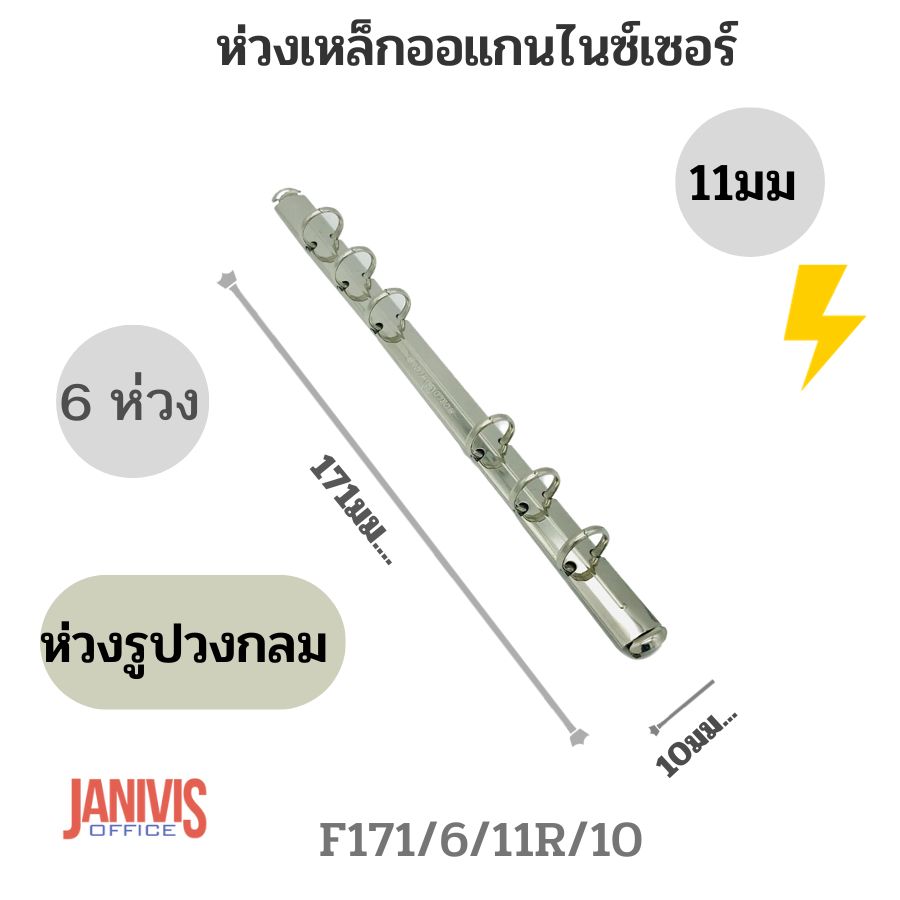 ห่วงเหล็กออแกนไนซ์ 6 ห่วง 11มม.(N171/6/11R/10) สีเงินวาว