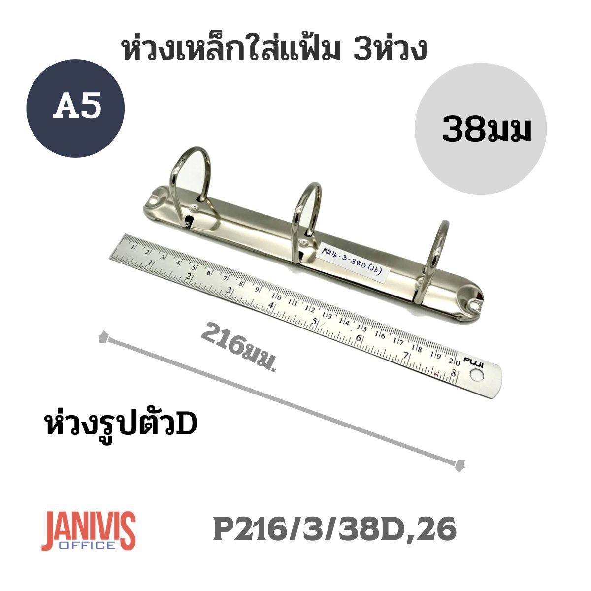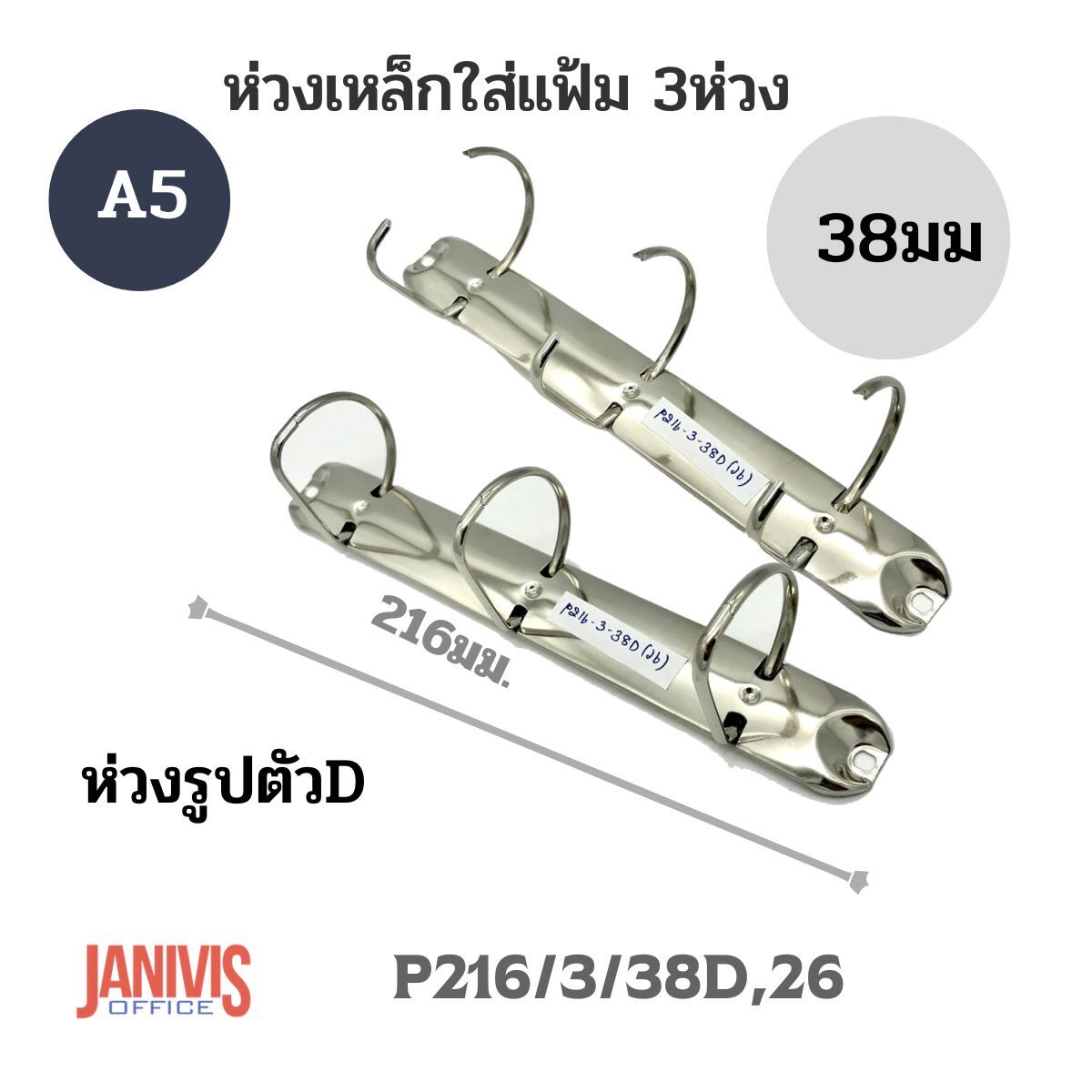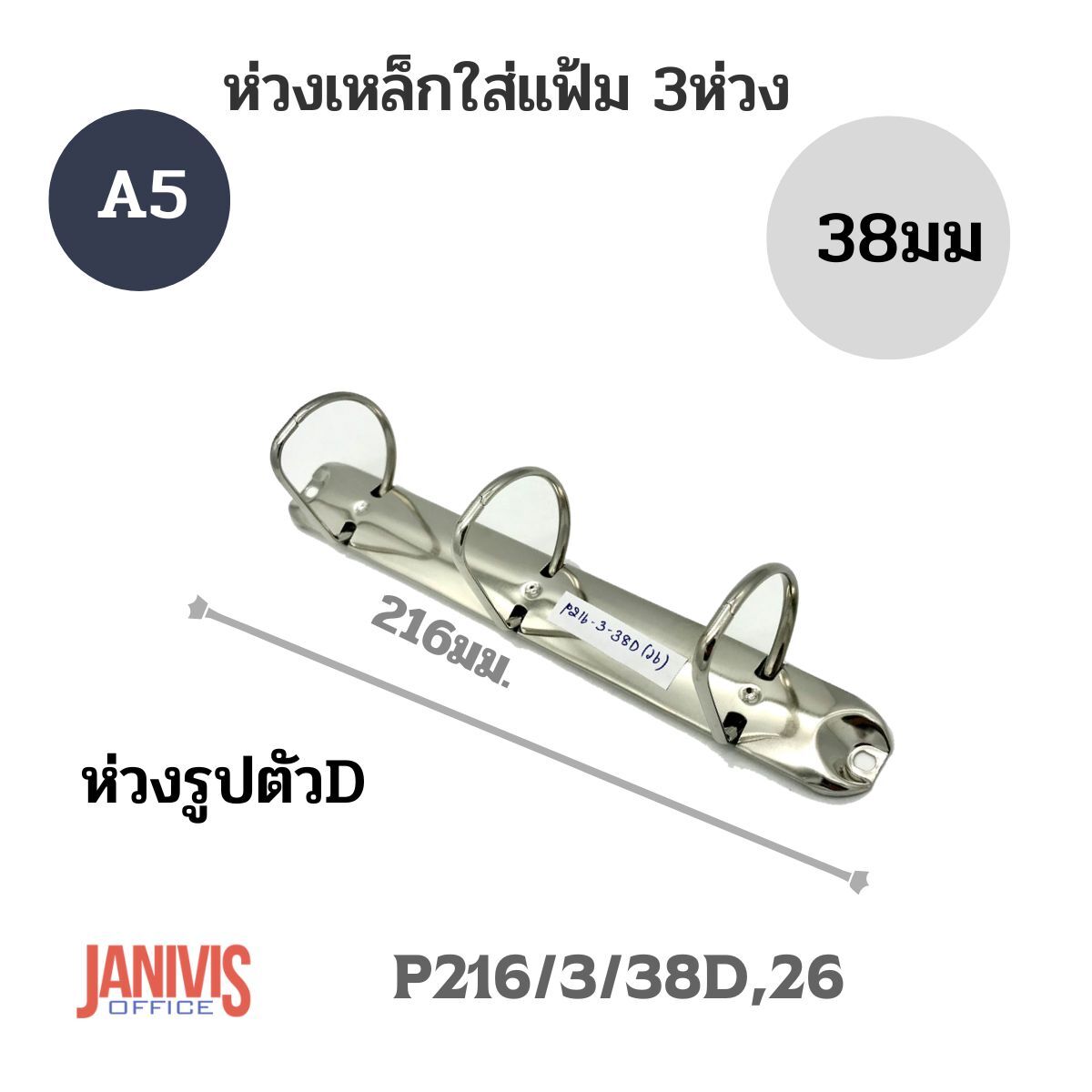 ห่วงเหล็กใส่แฟ้ม 3ห่วง หนา38มม. รหัส(P216/3/38D/26)