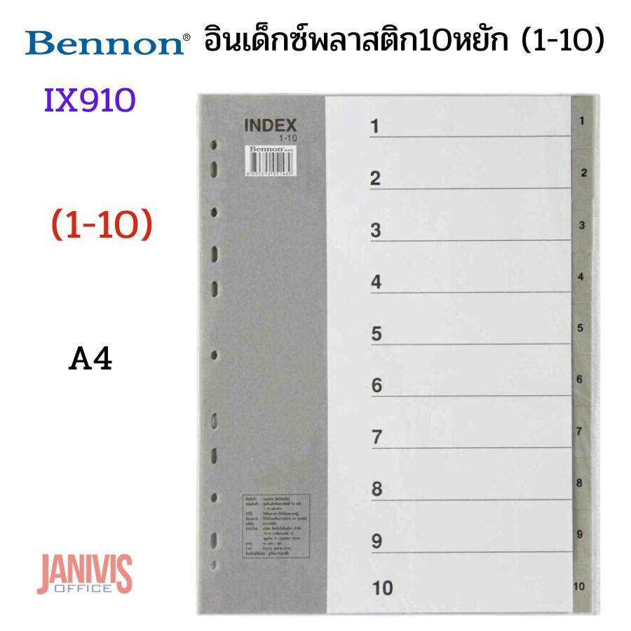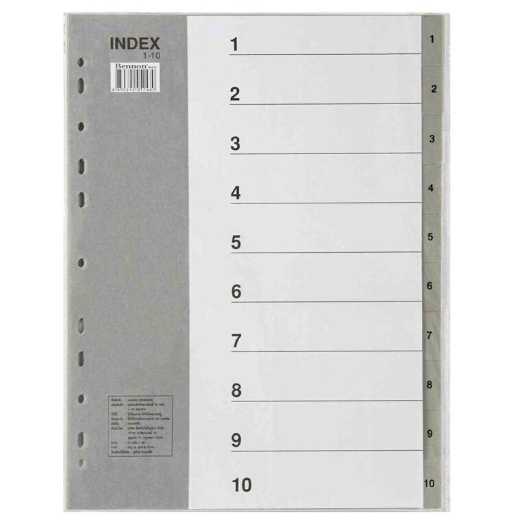 ชุดดัชนี (Index) พลาสติก 10 หยัก BENNON IX910 แบบสีเทา ขนาด A4