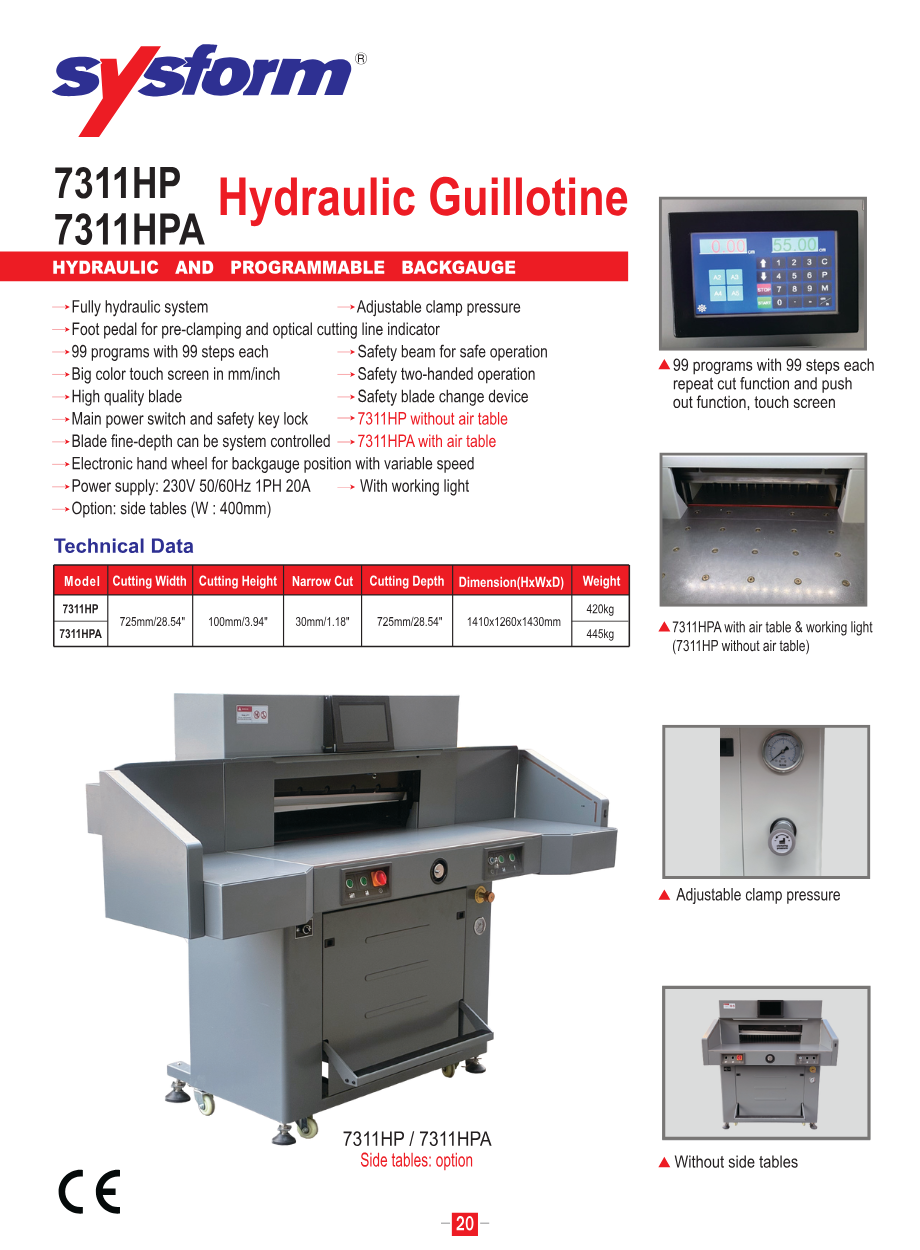 SYSFORM เครื่องตัดกระดาษระบบไฮโดรลิค 7311HPA Hydraulic Guillotine