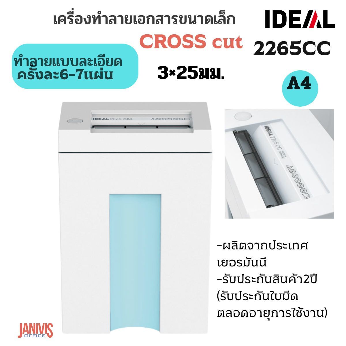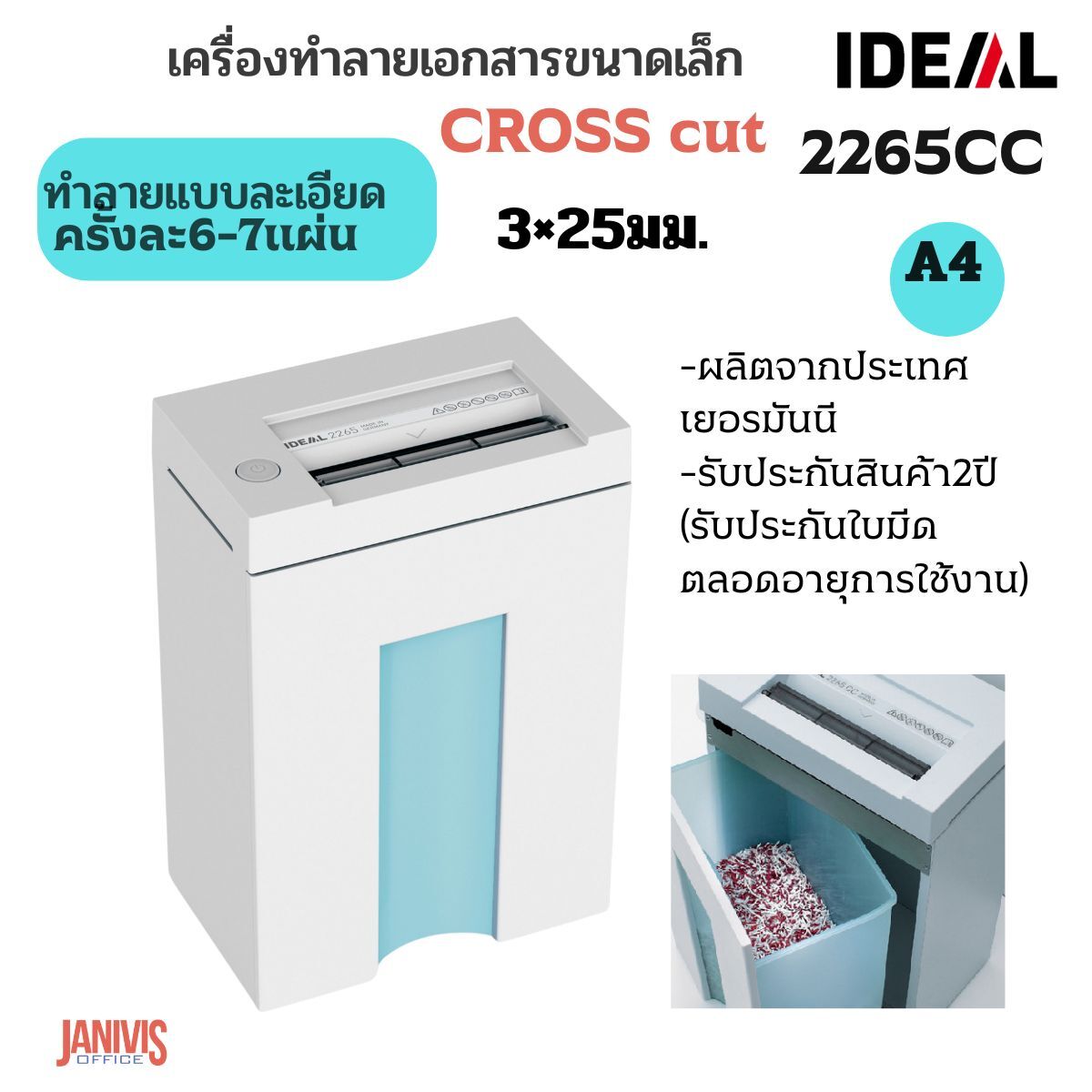 เครื่องทำลายเอกสาร IDEAL 2265-CC (3×25)ทำลายครั้งละ6-7แผ่น)