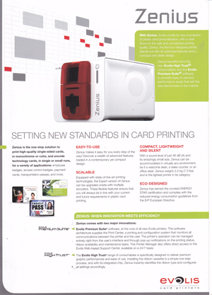 * รองรับชนิดบัตรดังนี้ Types of cards: all PVC, Composite PVC, PET, ABS1 and special varnish1 cards