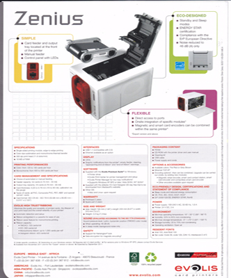 * ความเร็ว 120 ถึง 150 บัตรต่อชั่วโมง พิมพ์งานเต็มบัตรสีหน้าเดียว (พิมพ์ 1 หน้าใช้ Foil ชนิด YMCKO)