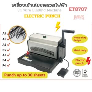 เป็นเครื่องเข้าเล่มที่สะดวกรวดเร็วสวยงามโครงสร้างโลหะแข็งแรงทนทาน ต่อการใช้งานได้หลายปี