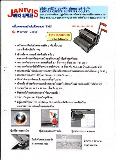 เป็นเครื่องเข้าเล่มที่สะดวกรวดเร็วสวยงามโครงสร้างโลหะแข็งแรงทนทาน ต่อการใช้งานได้หลายปี