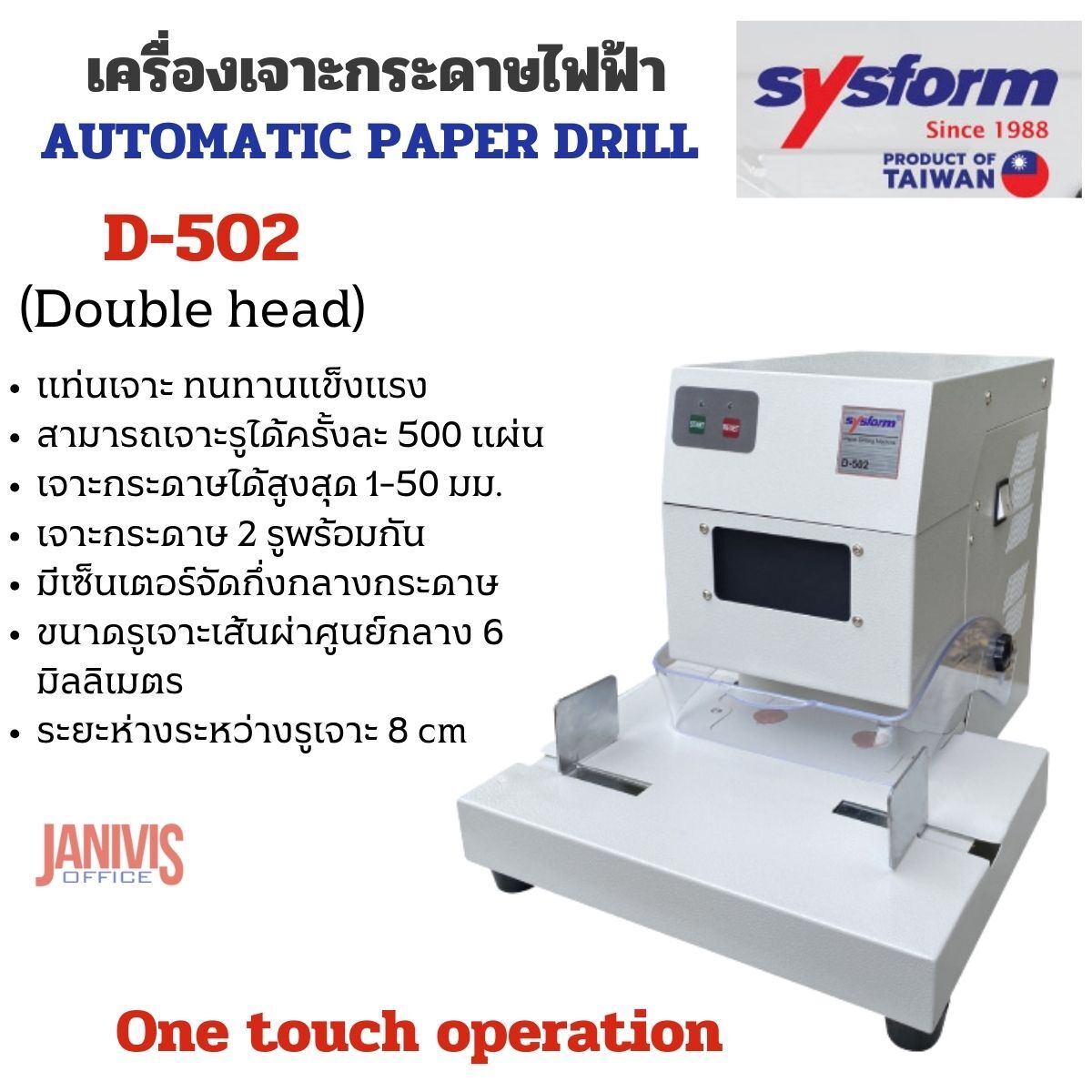 SYSFORM เครื่องเจาะกระดาษไฟฟ้าอัตโนมัติ 2 รู รุ่น D-502