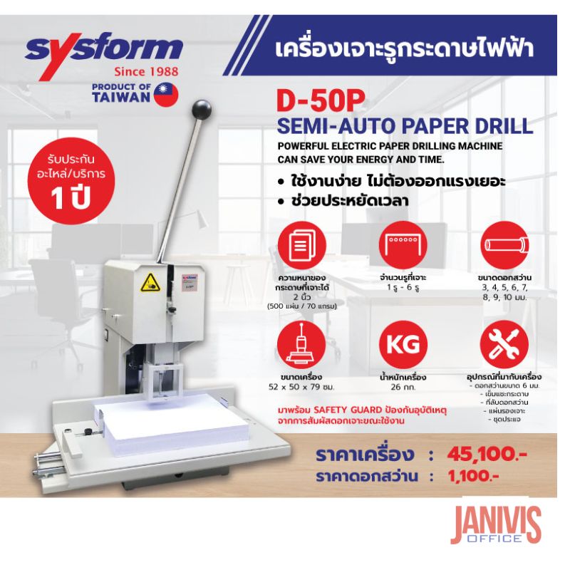 เครื่องเจาะรูกระดาษไฟฟ้า SYSFORM รุ่น D-50P