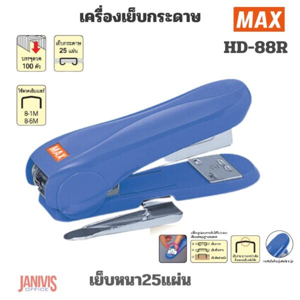 เครื่องเย็บ แม็กซ์ MAX HD-88R (เย็บหนา 25 แผ่น มีที่ถอน)