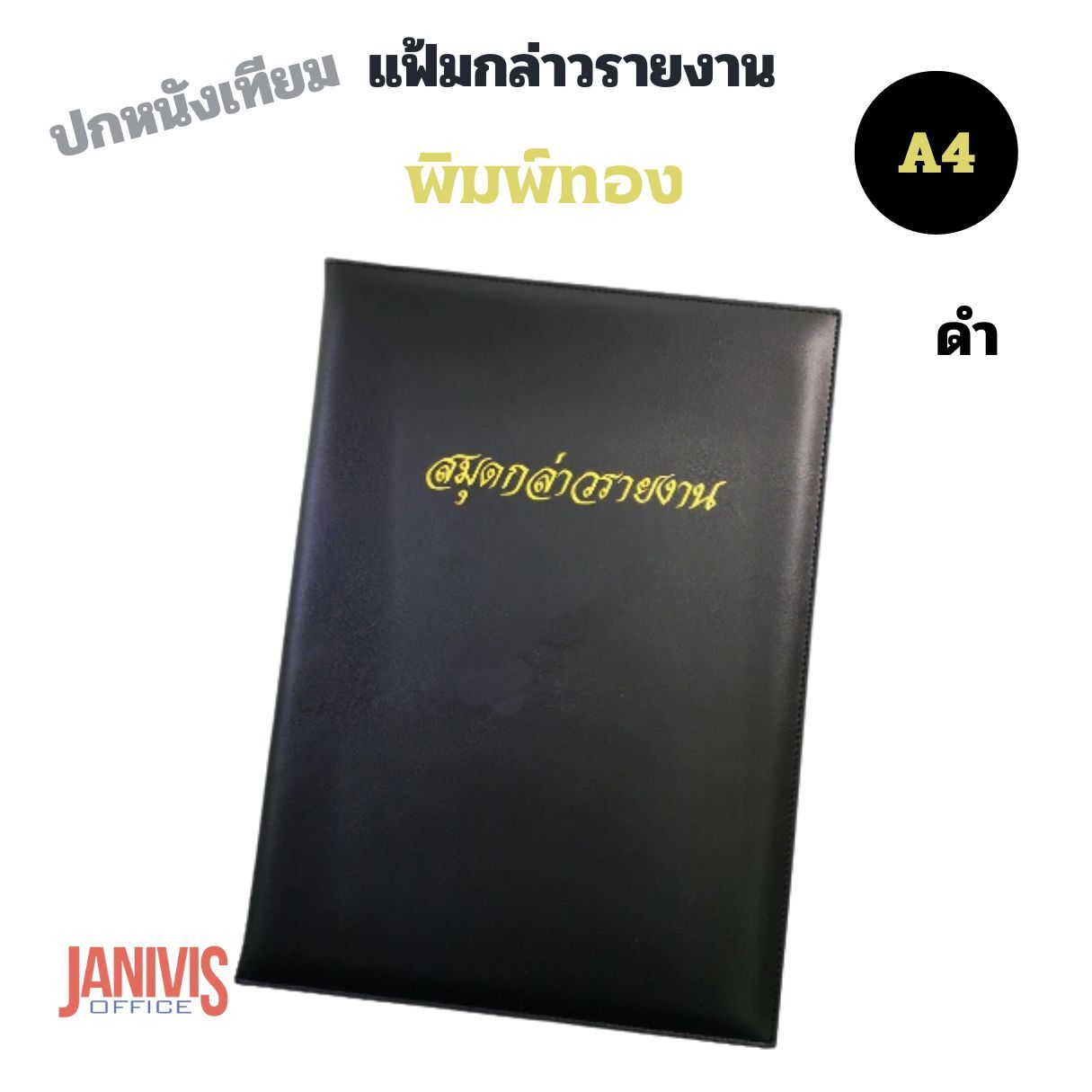 แฟ้มสมุดกล่าวรายงานหนังเทียม A4 พิมพ์ทอง