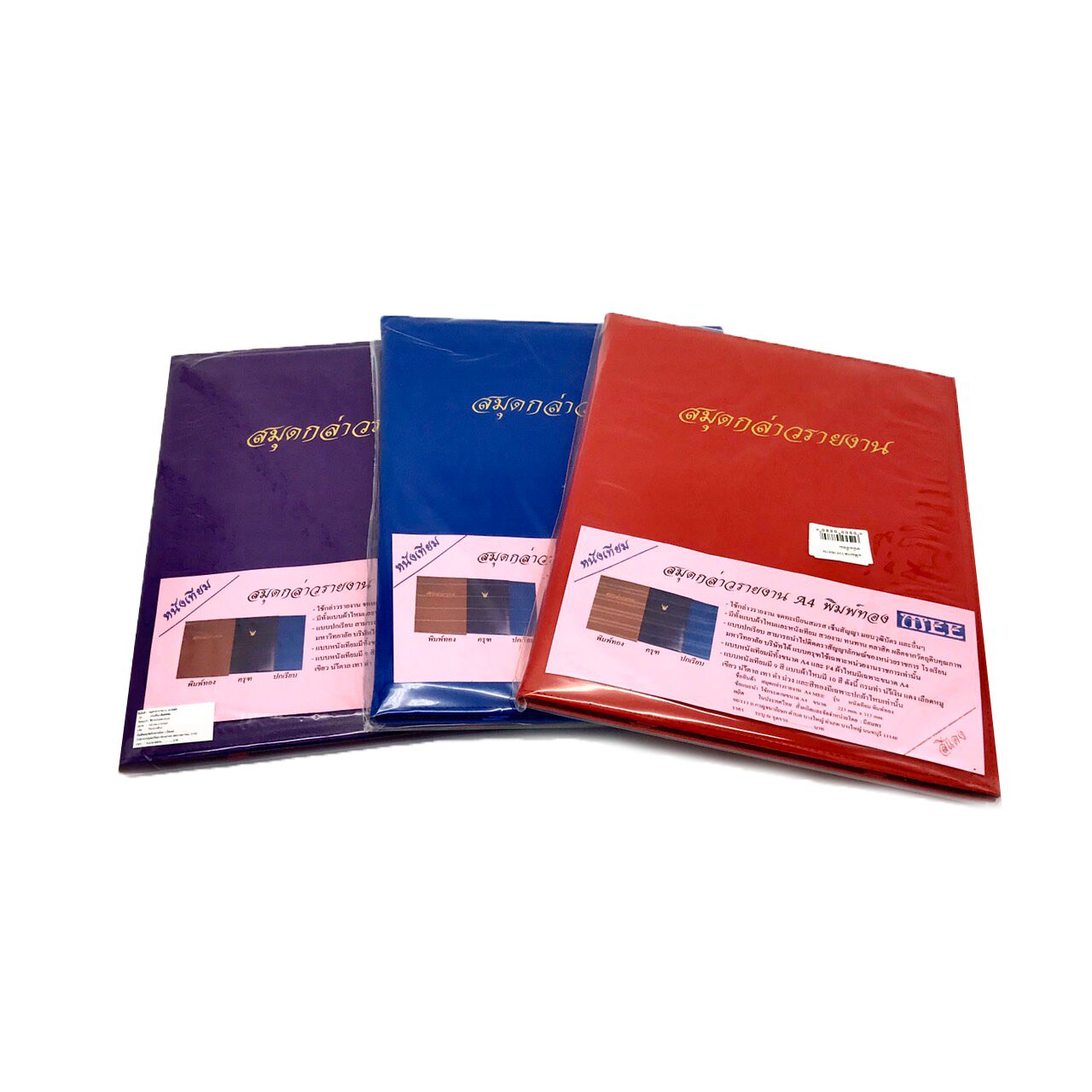 – ใส่กระดาษขนาดA4 ปกหนังเทียมพิมพ์ตัวหนังสือสีทอง