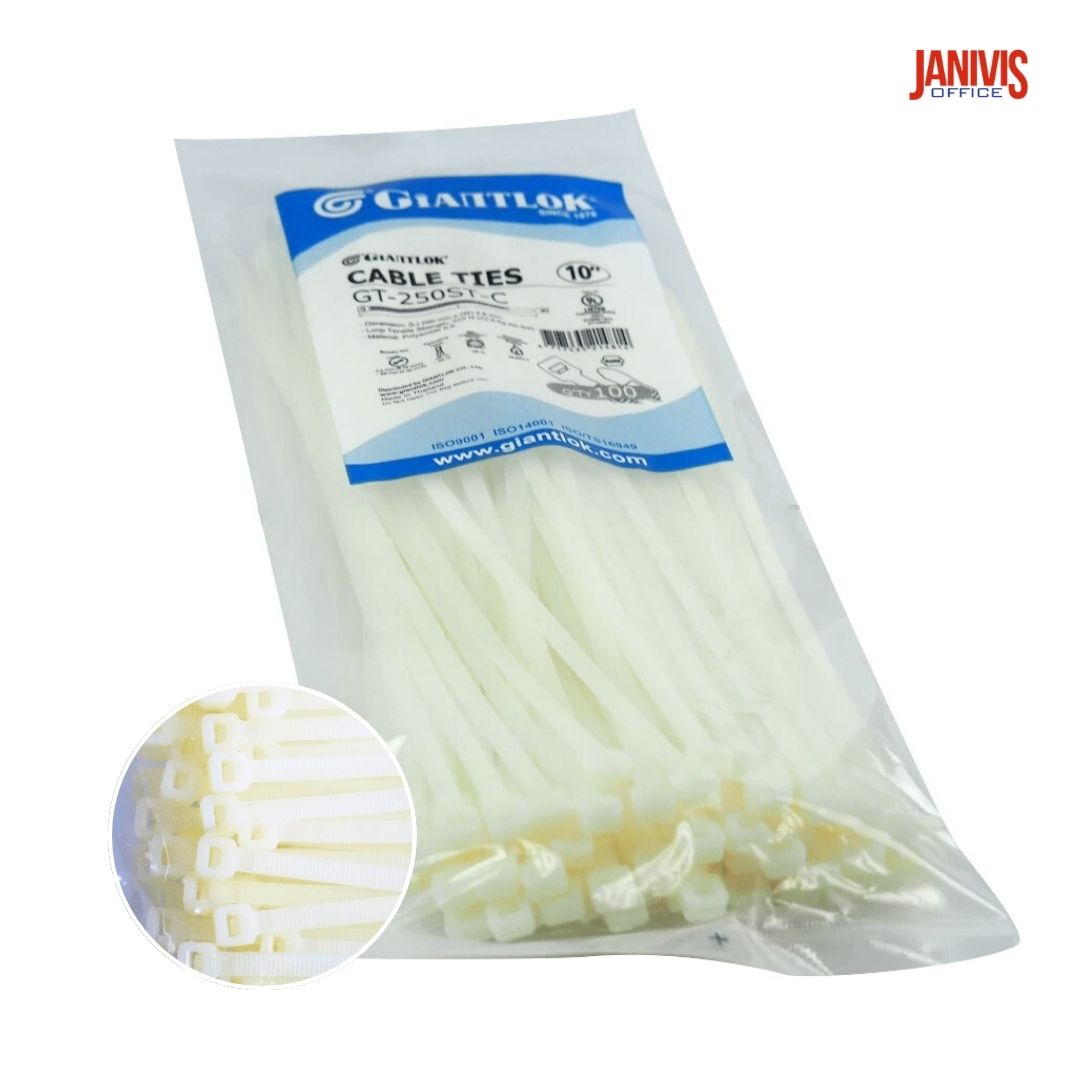 ไนล่อนรัดสายไฟ ไจแอ้นล็อค GT-250ST-C 10 นิ้ว สีขาว (100 เส้น/แพ็ค)