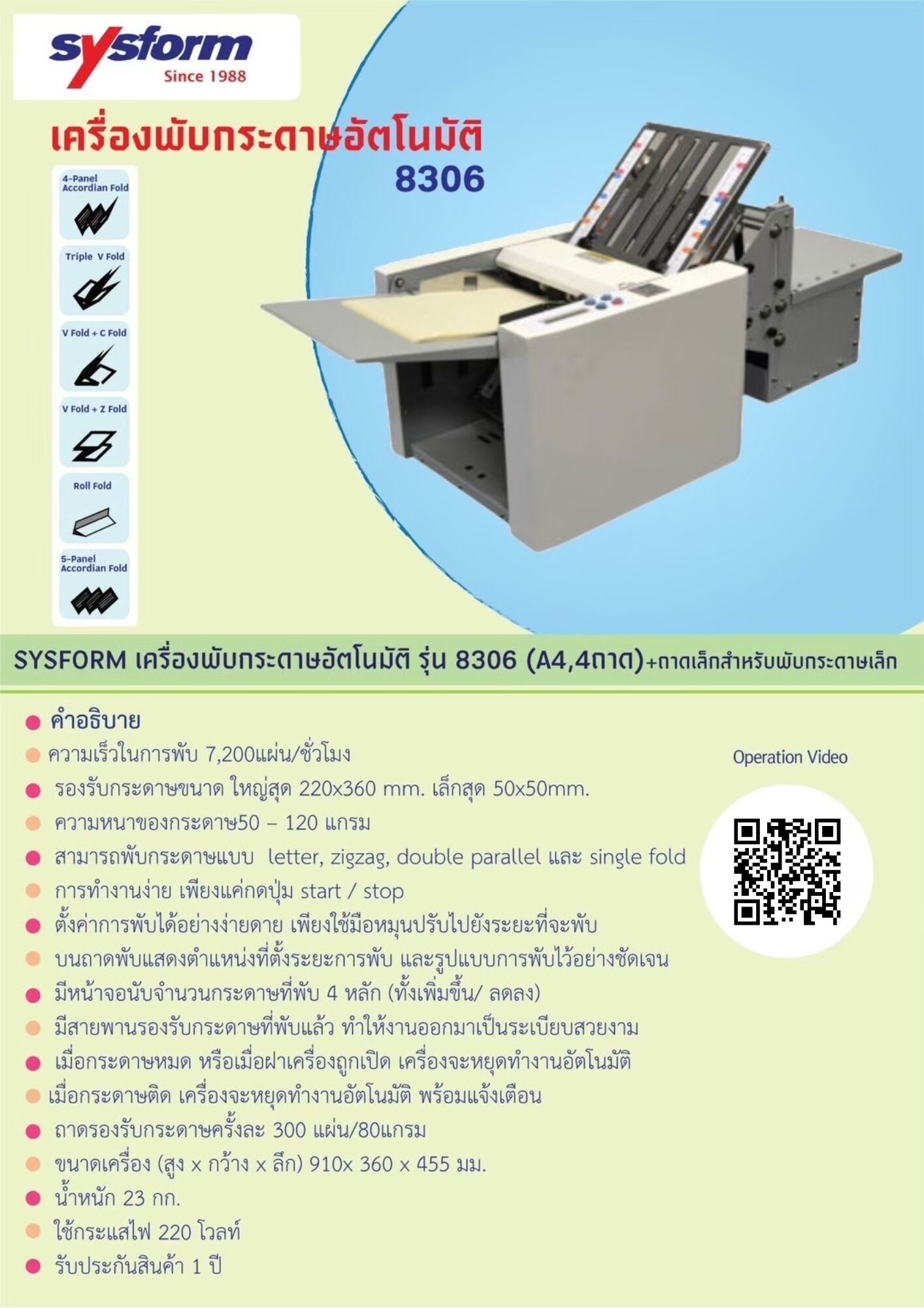 - ความเร็วในการพับ 7,200แผ่น/ชั่วโมง