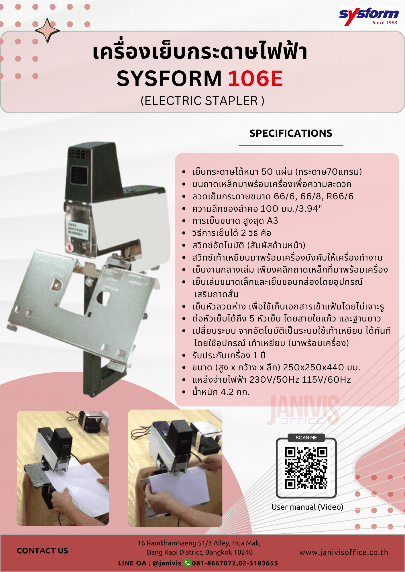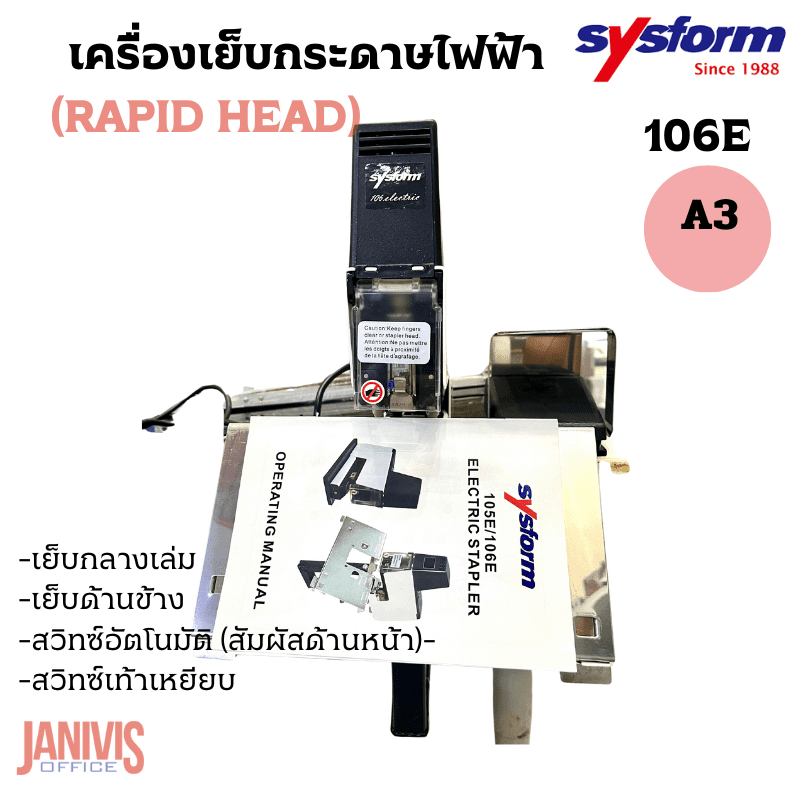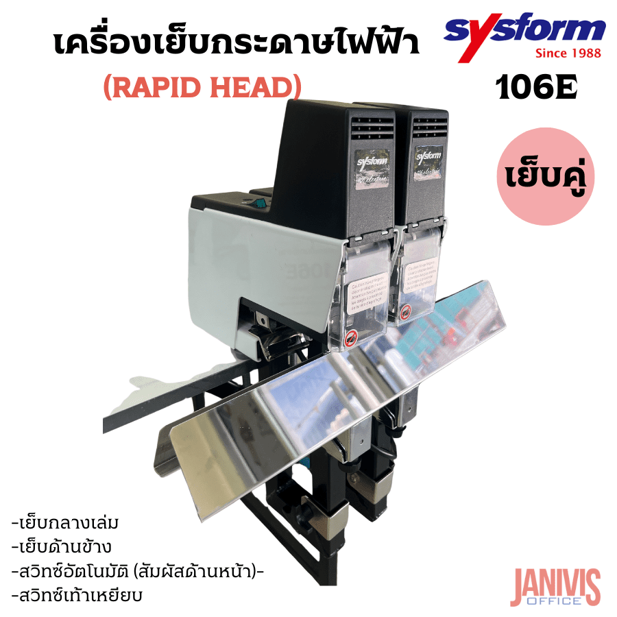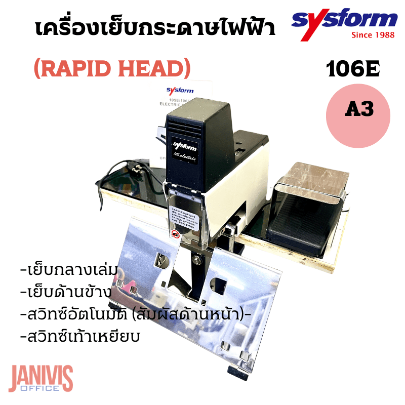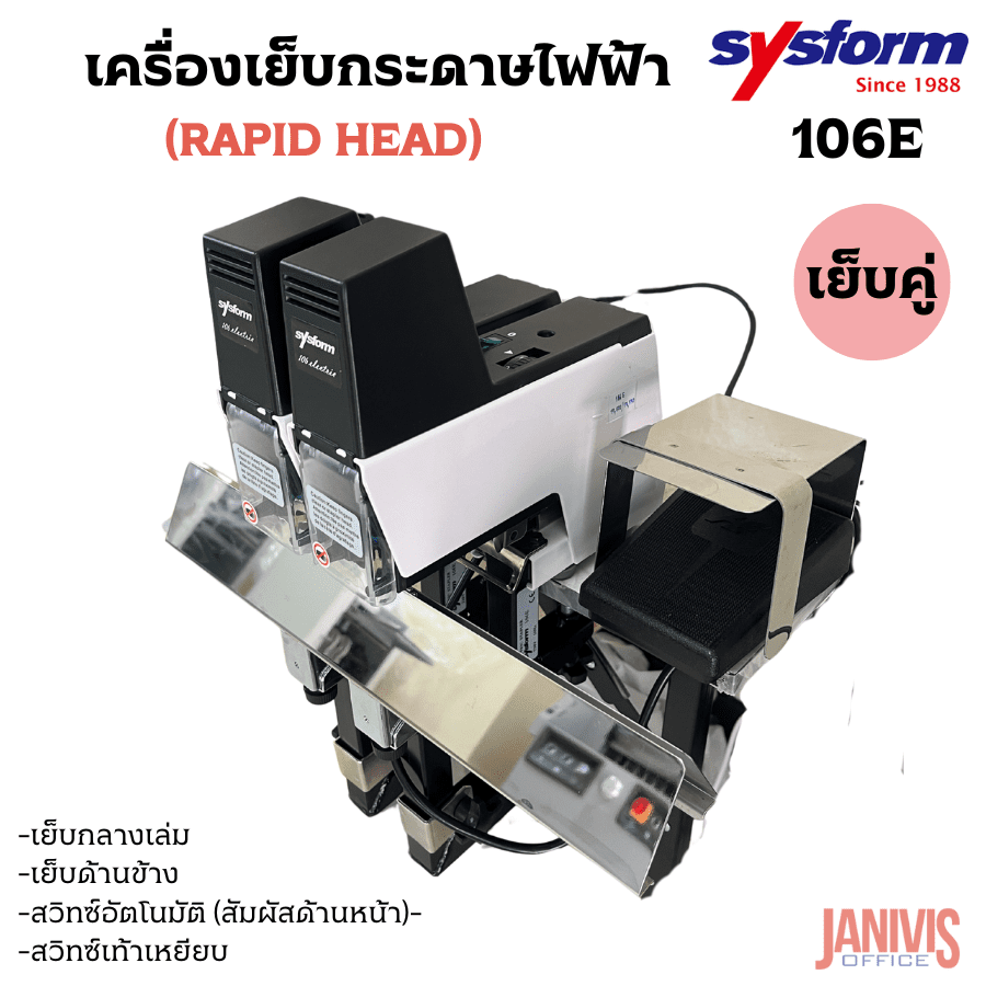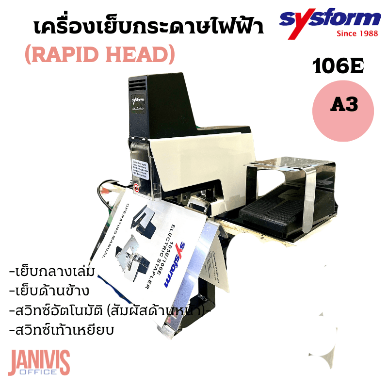 1.เย็บกระดาษได้หนา 50 แผ่น (กระดาษ 70 แกรม) บนถาดเหล็กมาพร้อมเครื่อง